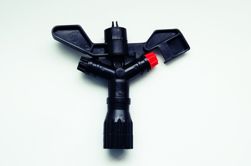 Aspersorul este echipat cu duza neagra ea fiind cea mica iar duza rosie este cea mare si poate fi comandata separat!