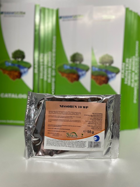 Nissorun 10 WP are efect insecticid, acaricid, ovocid, larvicid și combate acarienii, păianjenii de pe ambele fețe ale frunzelor, asigurând o protecție pentru o perioadă lungă de timp, de peste 40 zile. Produsul Nissorun 10 WP este o pulbere solidă, umectabilă, de culoare albă, cu miros ușor fructat, ce prezintă efect translaminar. Acaricidul Nissorun 10 WP se aplică foliar în volumele de apă recomandate fiecărei culturi. Nu este afectat de precipitațiile survenite după ce soluția s-a uscat pe plantă.