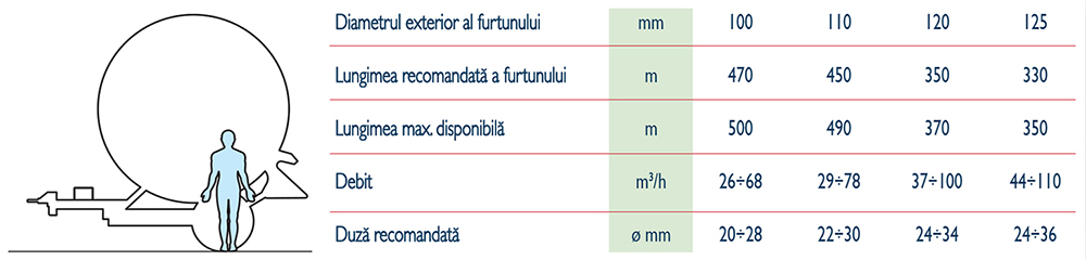 • Sistem de înfăşurare a furtunului cu şuruburi melcate cu reglare micrometrică şi ghidaj dublu